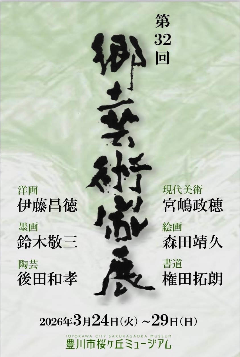 | 場所 | 豊川市桜ケ丘ミュージアム 2階市民ギャラリー 〒442-0064 愛知県豊川市桜ケ丘町79-2 tel. 0533-85-3775 【連絡先】 〒442-0011 豊川市東曙町225 宮嶋 政穂 |