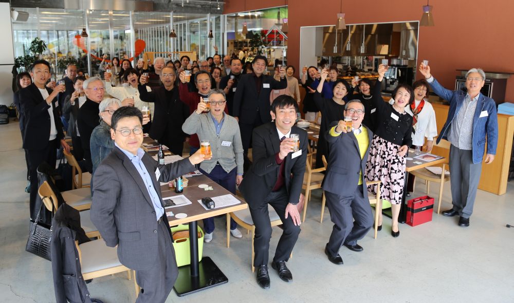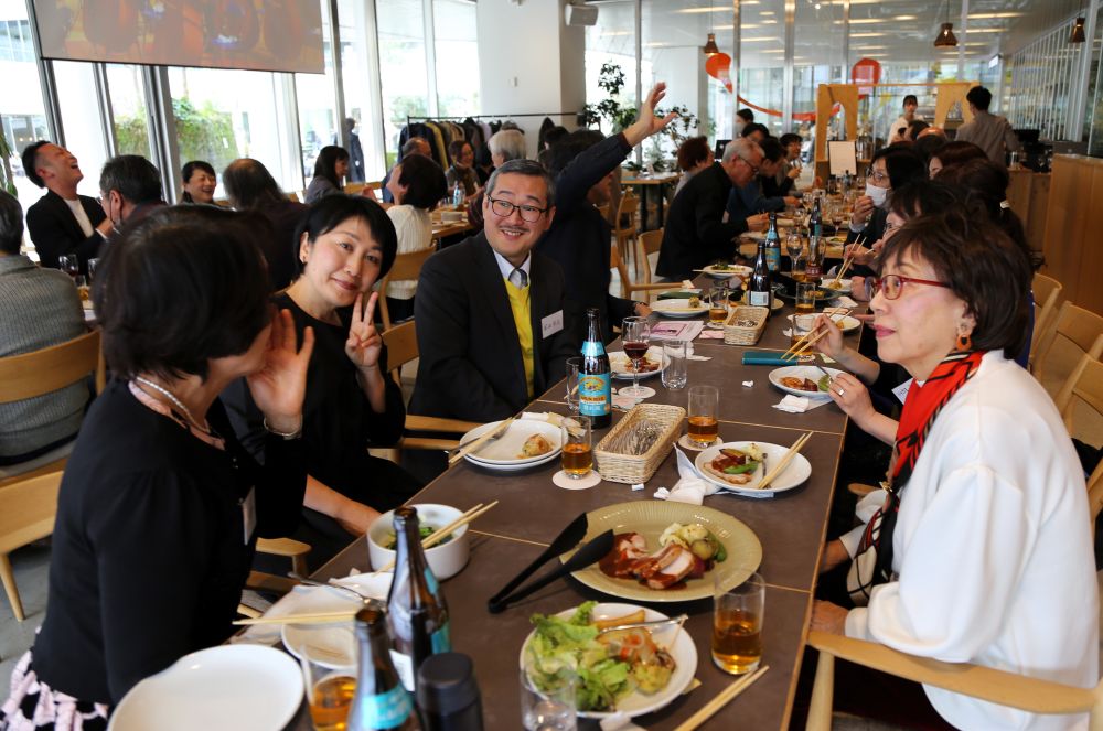 ゲストの岡田尚之さんに乾杯の発声をお願いしたところ、歌のアンコールも兼ねて『フニクリ・フニクラ』を歌っていただき、最高に盛り上がったところで乾杯となりました。