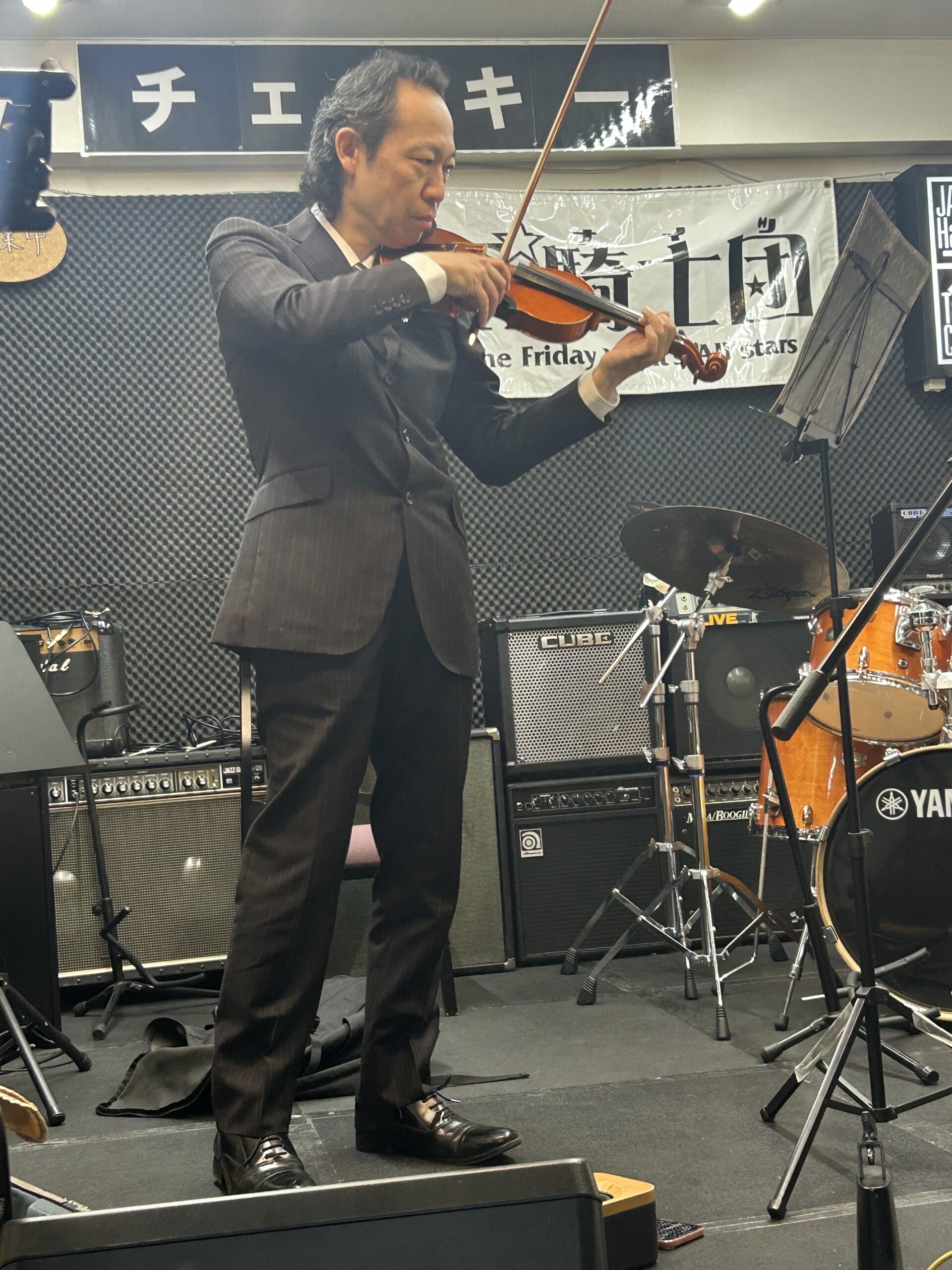 2次会は広小路のライブハウスに会場を移し、ビートルズコピーバンド・イオリン独奏・マツケンサンバなどバラエティに富んだ内容で大いに盛り上がりました。